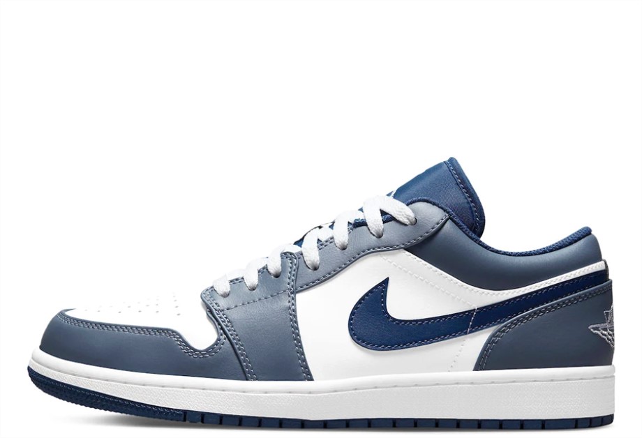 The Jordan 1 Low Ashen Slate adds subtle grey hues to the blue accents on its upper, giving them a more toned down, versatile vibe. These accents sit above a premium white leather base, with Nike Swooshes across the sides and Jordan Wings on the heel. A deeper solid blue outsole sits beneath the Air midsole, adding all-day comfort to the Jordan 1 Low Ashen Slate's versatile looks.