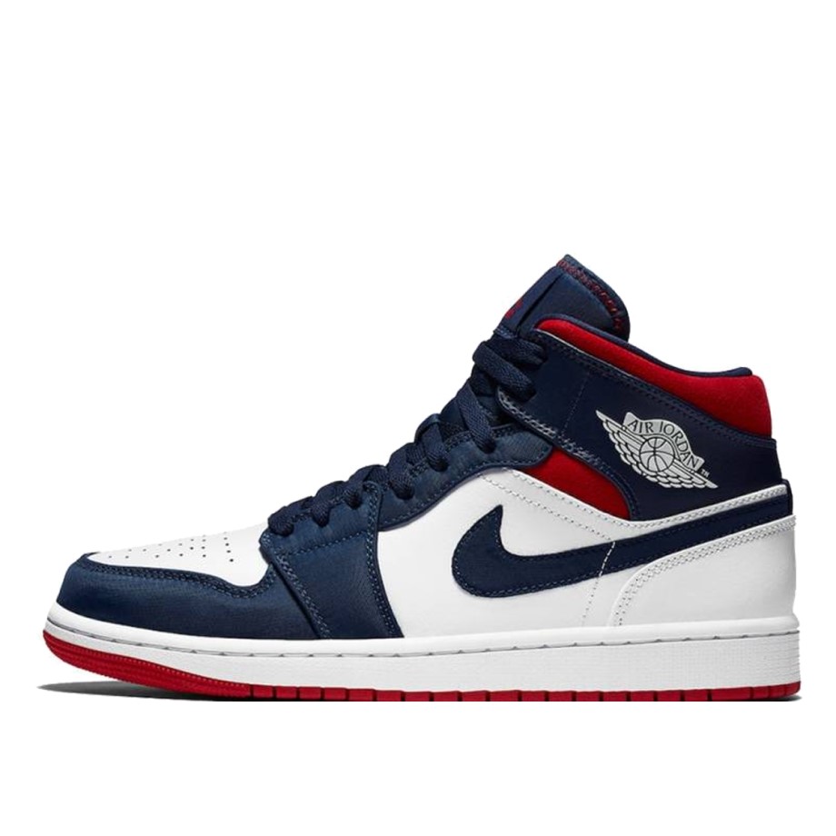Paying homage to the brand's American roots, the Air Jordan 1 SE USA is a patriotic red, white and blue tribute to the home of the Jordans. Showcasing an all American colour pallet the signature silhouette is constructed from a luxurious mix of smooth leather, creamy suede and reinforced nylon featuring a complementary combination of stark white and navy with crimson accents. The signature swoosh sits on a bold white background drawing focus to its iconic shape, Nike Air Technology is concealed within the midsole ensuring The Air Jordan 1 Mid SE USA offers unmatchable comfort from court to street.