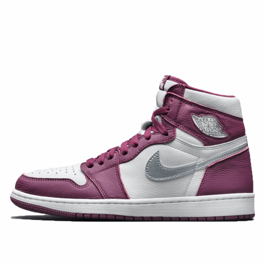 On the Air Jordan 1 Retro High OG Bordeaux deep, red wine coloured panels over a premium tumbled leather upper mainly consisting of crisp white. Silver reflective Swooshes are found on the sides, with matching Jordan Wings found on the red ankle collar. The rubber outsole is covered in red, beneath the Air unit midsole. The Air Jordan 1 Retro High OG Bordeaux presents a bold but tasteful colourway, cop now on KLEKT.