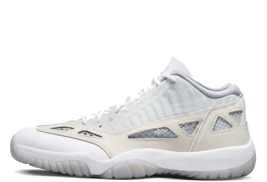 The Air Jordan 11 Light Orewood Brown strips off the 11's signature patent leather for a low top, International Edition remix. The base of the upper is done in a breathable mesh, with light grey canvas panels on top, as well as beige leather on the sides. The Jumpman logo is embroidered on the tongue, and found on the insole. The upper sits on top the 11's iconic sole, with full-length Air cushioning and translucent rubber underfoot. Cop the Air Jordan 11 Light Orewood Brown on KLEKT.