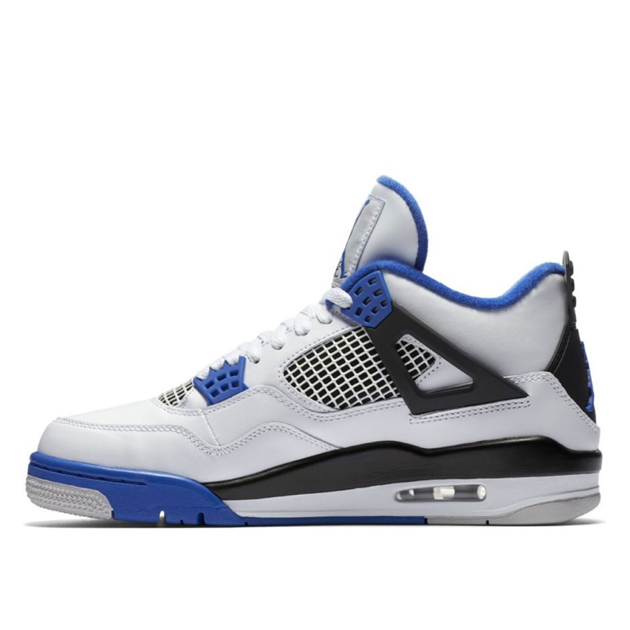 Dropping in March 2017, the Nike AJ 4 IV Retro White Motorsports are inspired by Michael jackson's Motorsport racing team. Incorporating the teams' white, black and varsity blue colours across a white upper. Now available on KLEKT.